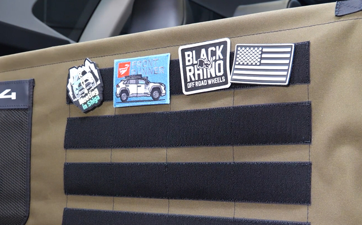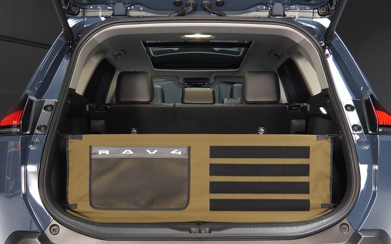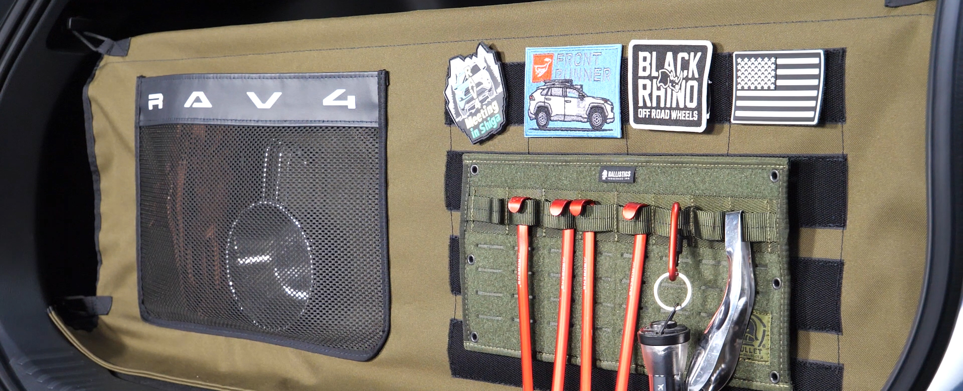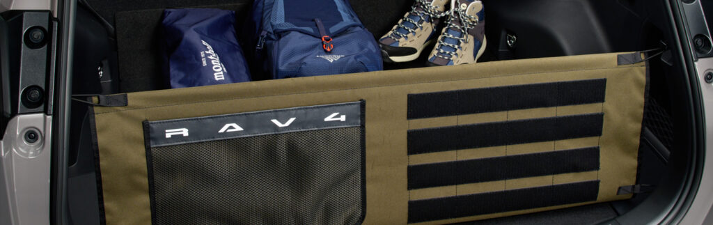 ラゲージスペースに積んだ荷物がズレたり傾いたりした場合にバックドア内壁などに傷がつくのを防止するアイテム。また、ラゲージ開口時の目隠しにもなりプライバシー保護にも有効です。高耐久ナイロン生地を採用しタフな使用にも対応しつつ、メッシュポケットや面ファスナーを装備することで取り出しやすい位置に小物を収納でき、アウトドアユースにも便利な機能がプラスされています。
