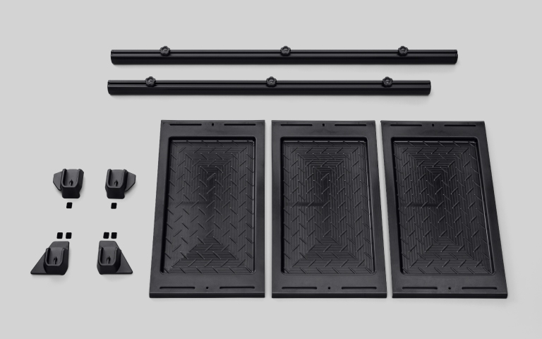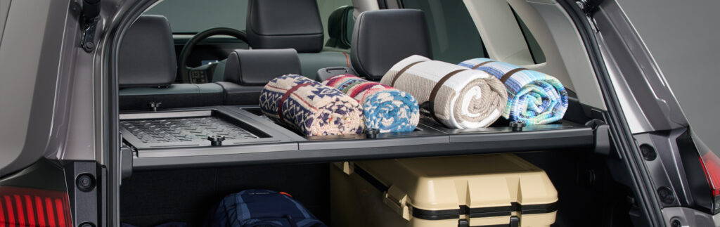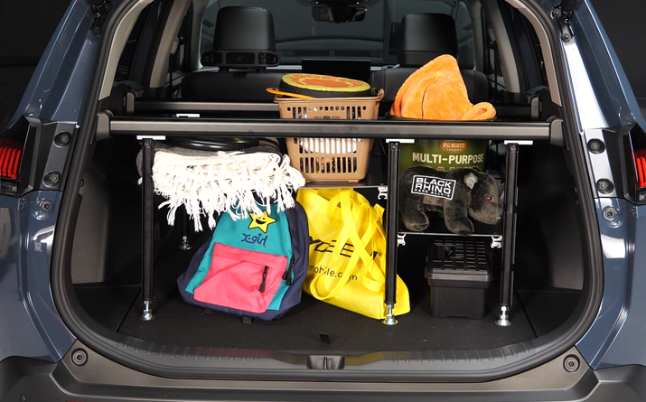 RAV4の積載スペースを有効活用できる商品です。車両標準のトノカバーとの付替えが容易な構造とし、普段使いからキャンプなどのアウトドアや趣味に合わせた利用シーンまで、工夫一つで幅広くご使用いただける商品となっております。オリジナリティあふれる使い方を見つけることも含めてお楽しみください。
