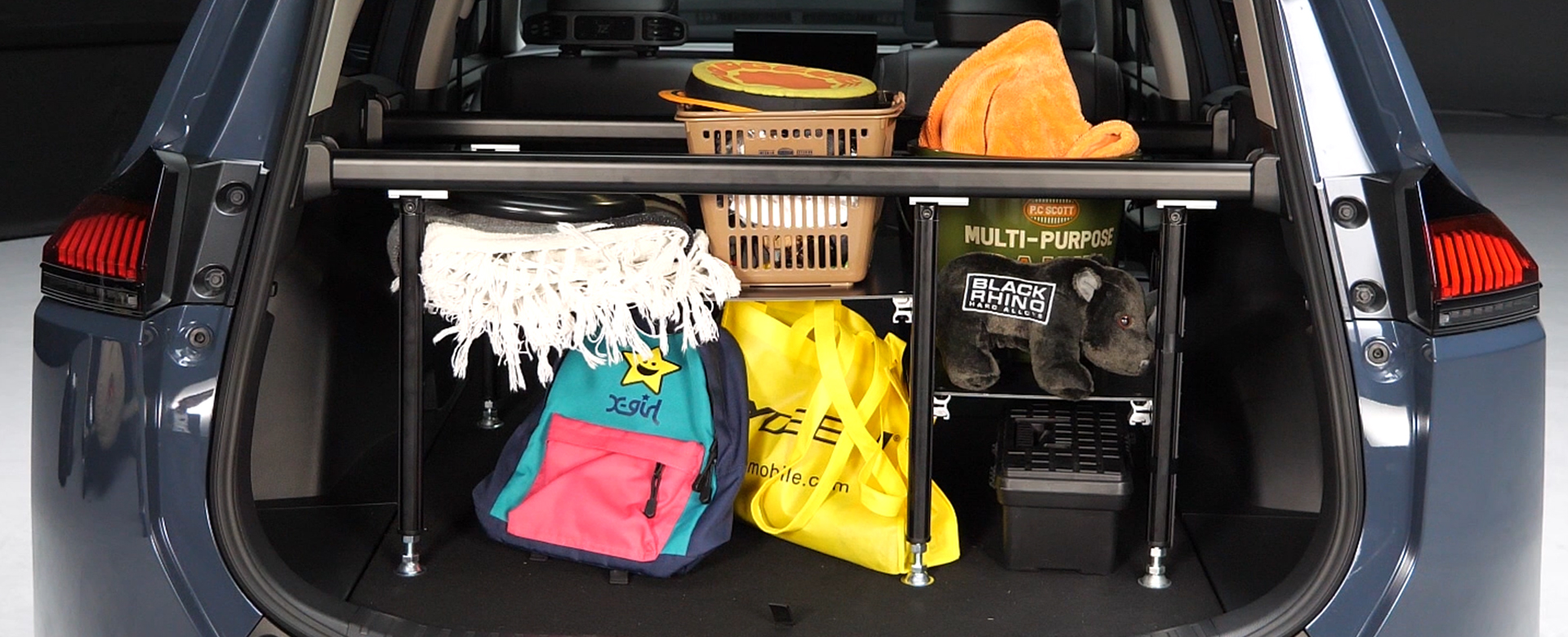 RAV4の広大なラゲージ空間をさらに有効活用できるアイテムがこのラゲージユーティリティバーです。バーの上に固定可能な3分割トレイを使用することで、荷室の上部と下部の空間を分割し、荷崩れの防止に効果を発揮しつつラゲージスペースを有効活用できます。市販のパイプなどを組み合わせてシェルフ(棚)を作るなど、カスタムの可能性も広がりアウトドアでも普段づかいでも、お客様のアイデア次第でさらに自分好みの使い方を楽しむことができます。