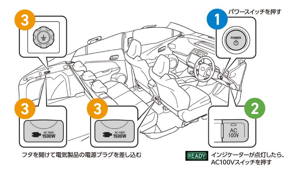 ※ご使用の際は、アクセサリーコンセントの周波数をご確認ください。また、車両と接続する電気製品の周波数を合わせてご使用ください。